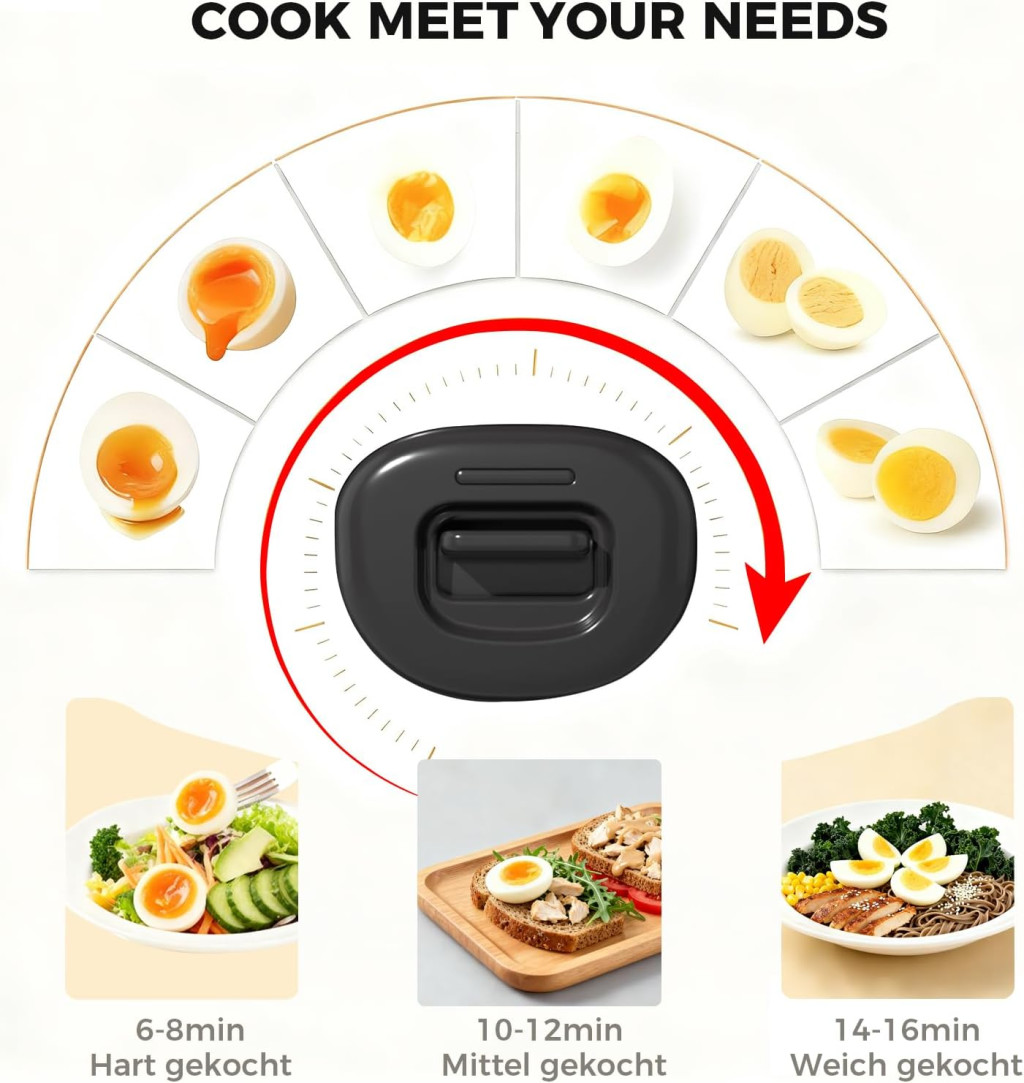 Az egyszerű kezelés és a beépített akusztikus jelzés biztosítja, hogy soha nem fogod túlfőzni a tojásaidat. A BPA-mentes, könnyen tisztítható alkatrészek és a kompakt méret ideális választás a modern, egészségtudatos háztartások számára.