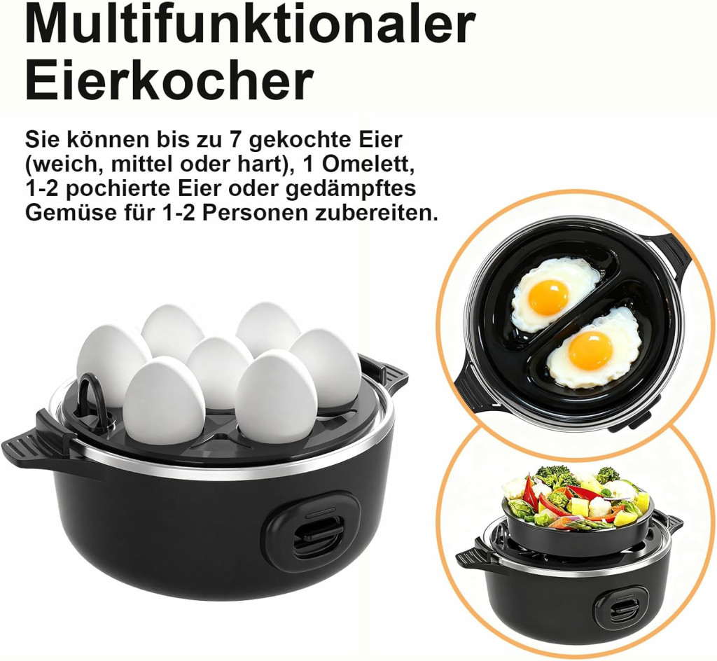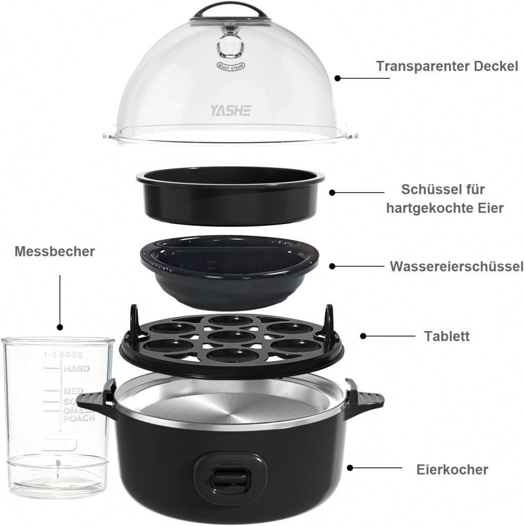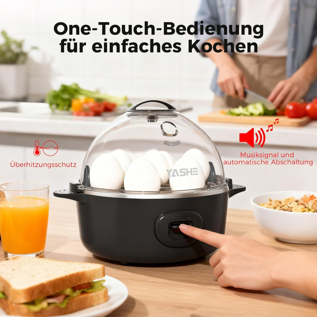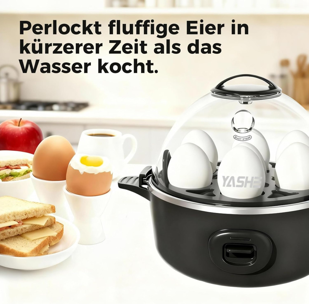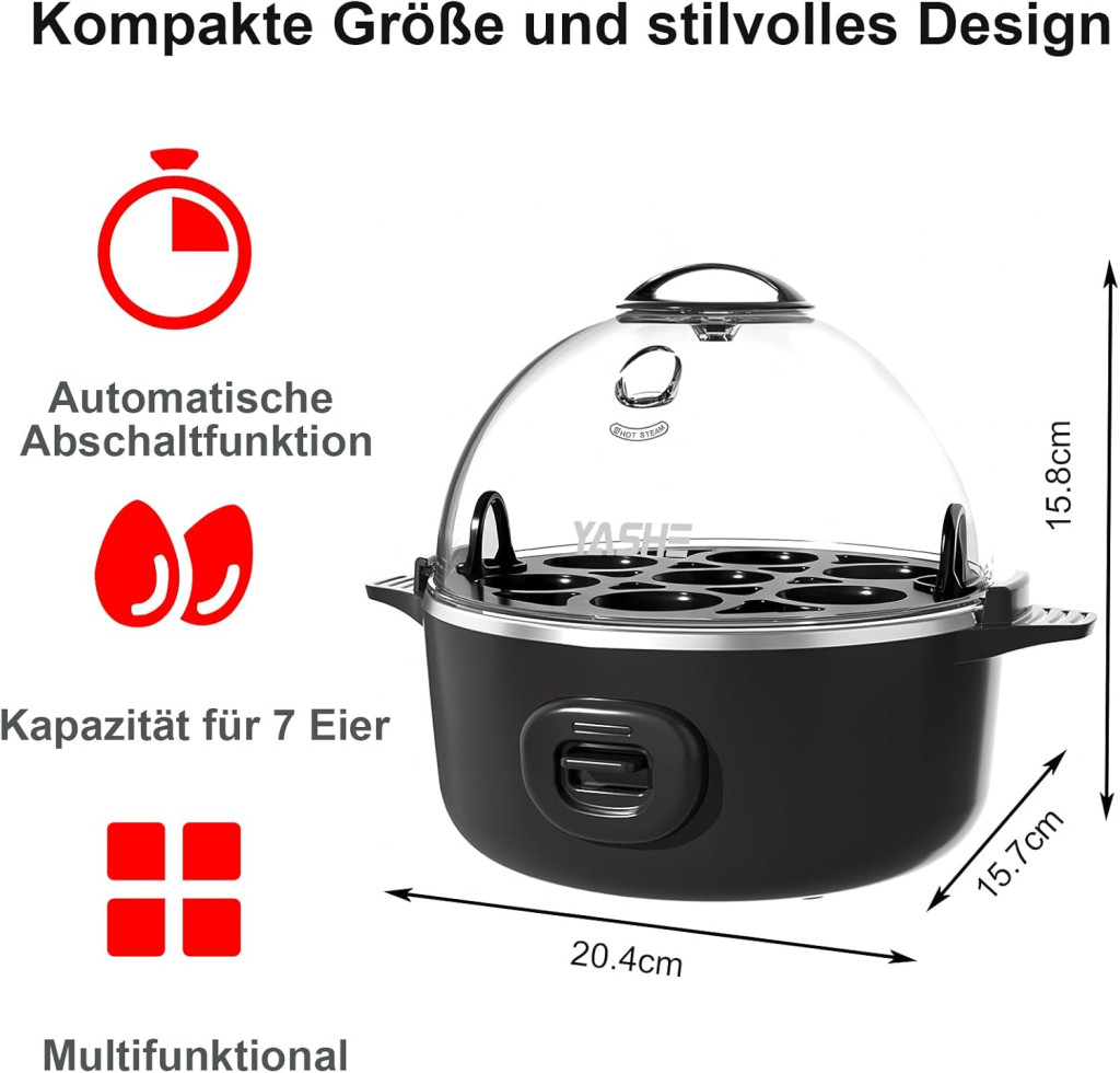 YASHE Elektromos Tojásfőző 7 Tojáshoz - Kemény, Közepes és Lágyan Főzött Tojások