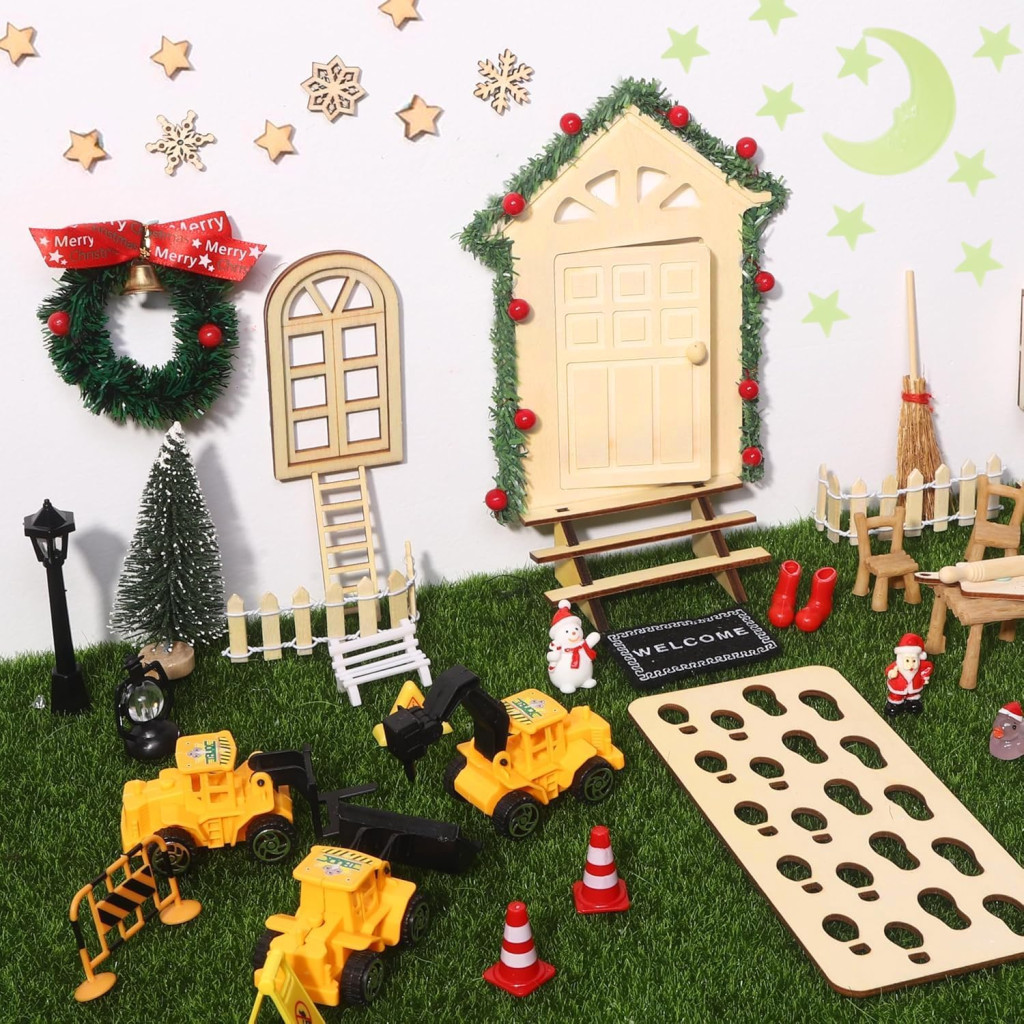 - 78-dielna kompletná sada: Všetky potrebné prvky pre kompletný svet škriatkov vrátane drevených dverí, schodíkov, plotov a mnohých dekoračných predmetov