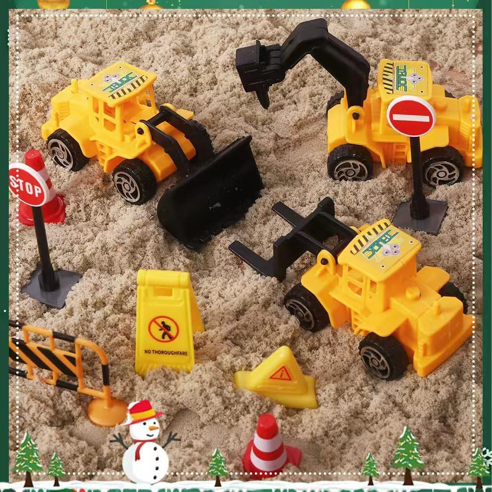- Prvky staveniska: Pozoruhodný detail – výstražné značky, dopravné kužele a stavebné stroje, ktoré dodávajú hravý a kreatívny nádych