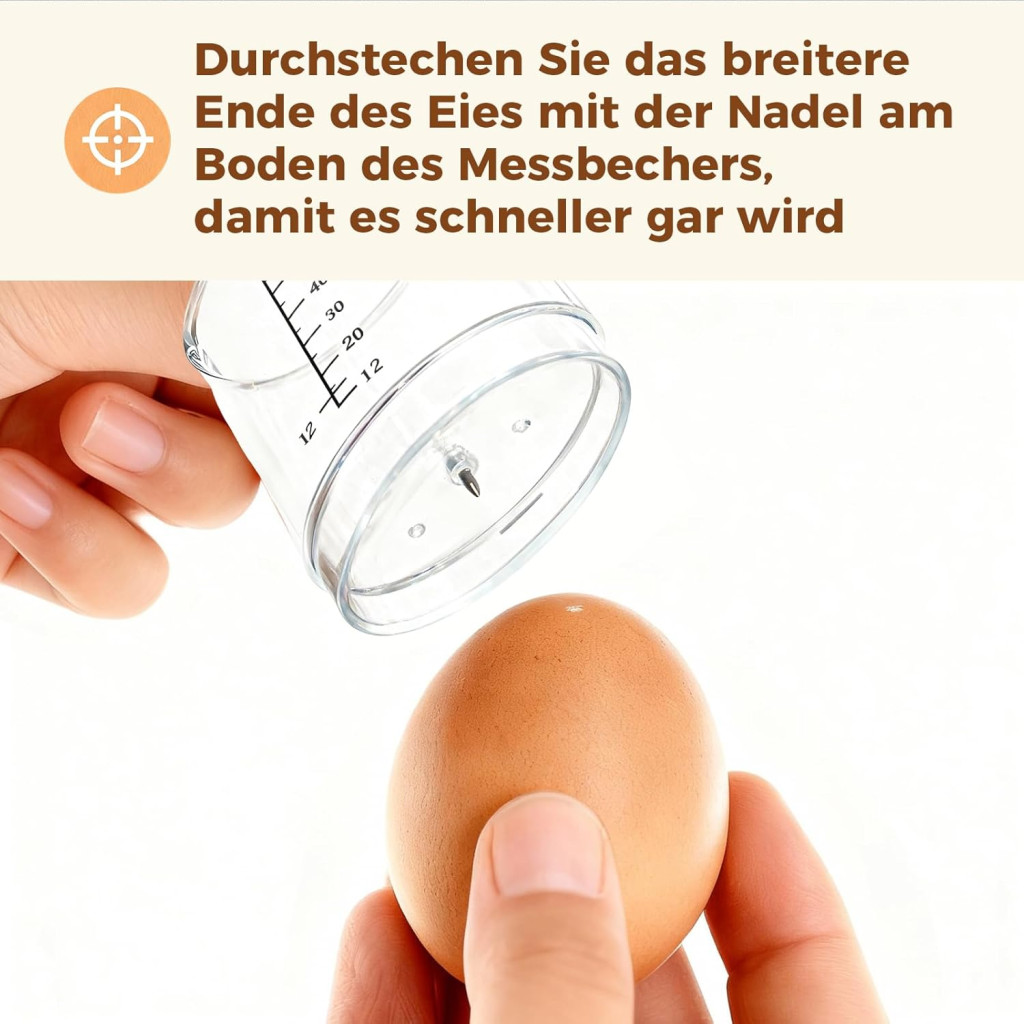 • Mérőpohár Integrált Tojásvágóval: Praktikus kiegészítő az ideális főzési eredményekhez és könnyű hámozáshoz.