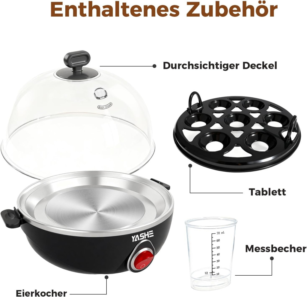 YASHE Elektromos Tojásfőző 7 Tojáshoz - Puha, Közepes és Kemény Főtt Tojások