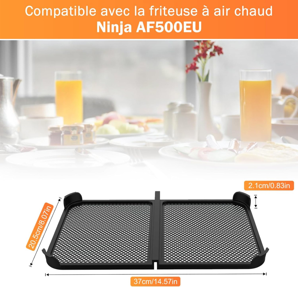 A termék kifejezetten a Ninja AF500EU 4 literes légfryer modellhez tervezték. A rács méretei: 22 cm hosszúság × 3,6 cm szélesség × 19 cm vastagság, amely tökéletesen illeszkedik az eredeti légfryer kosarához. A szilikon anyag rugalmassága lehetővé teszi az egyszerű behelyezést és eltávolítást, anélkül, hogy sérülne az eszköz. Mikrózható is, így még több felhasználási lehetőséget biztosít.