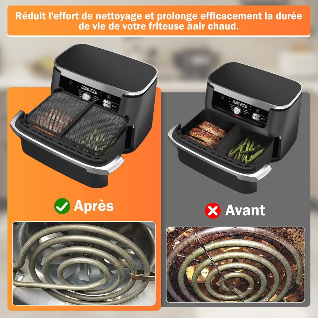 • Védi a fűtőspirált és ventilátort a zsírfröccsenéstől
