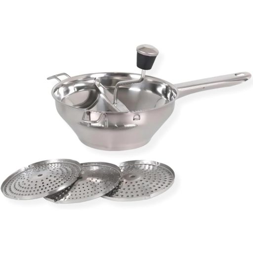 A rozsdamentes acél anyag garantálja, hogy az eszköz évekig megbízhatóan működik, míg a három cserélhető korong lehetővé teszi, hogy pontosan olyan textúrájú ételt készíts, amilyet szeretnél. Az ergonomikus kialakítás és az oldalsó támaszok biztosítják, hogy a használat kényelmes és biztonságos legyen.