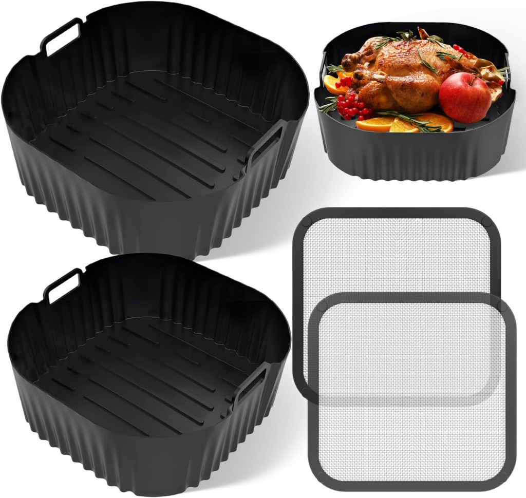 Összefoglalás: Ez a 4 részes kiegészítő szett tökéletes választás azoknak, akik maximálisan szeretnék kihasználni Cosori Turbo Tower Pro légfriteuszukat. A magas minőségű szilikon formák és mágneses fröccsenésvédők biztosítják az optimális teljesítményt, könnyű kezelhetőséget és hosszú élettartamot. Az egyenletes légkeringés és a precíz méretezés garantálja a kiváló sütési eredményeket, míg a könnyen tisztítható anyagok időt takarítanak meg a konyhai munkában.