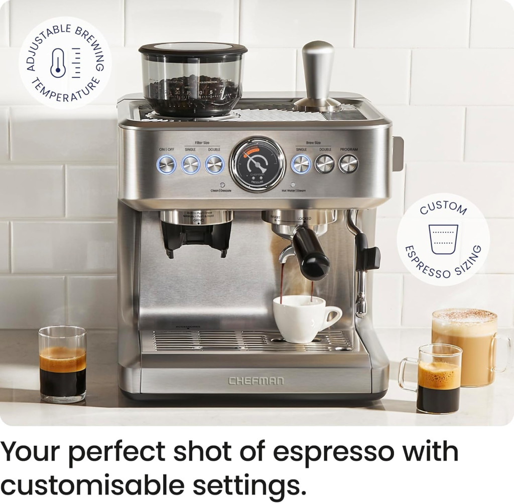 Chefman Crema Supreme 15 Bar Espresso Kávéfőző Beépített Kávéőrlővel