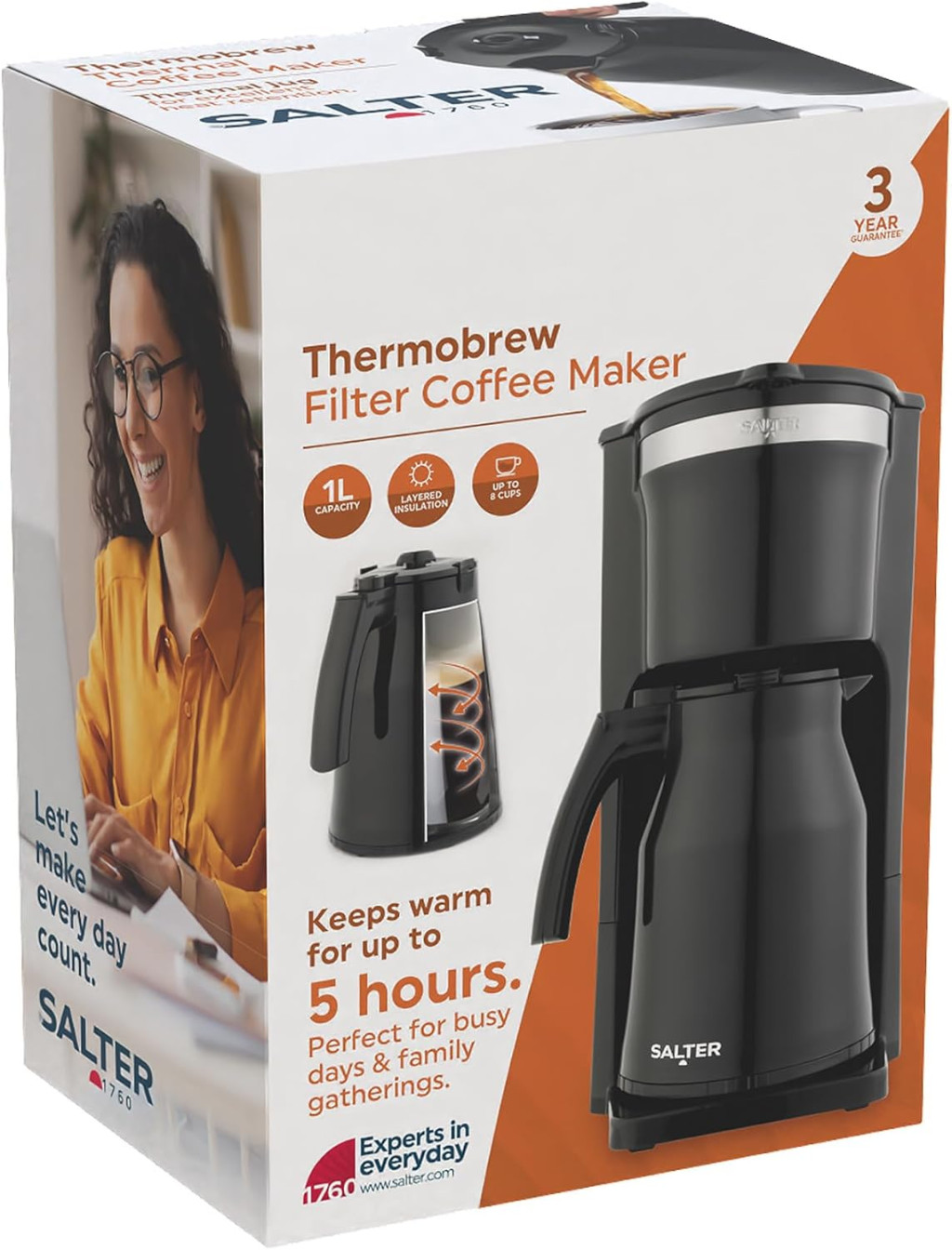 - Csomagolás tartalma: 1 × Salter Thermobrew kávéfőző, 1 × mérőkanál