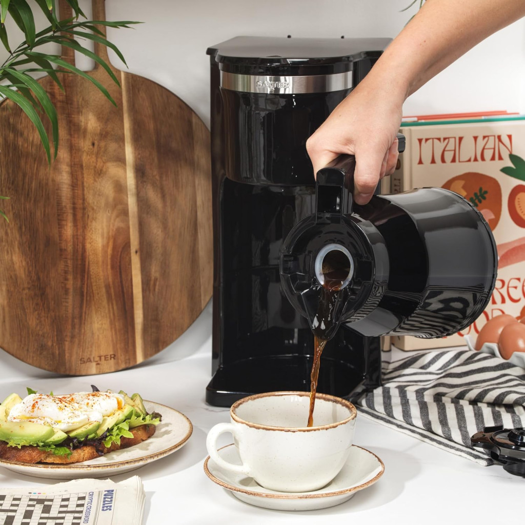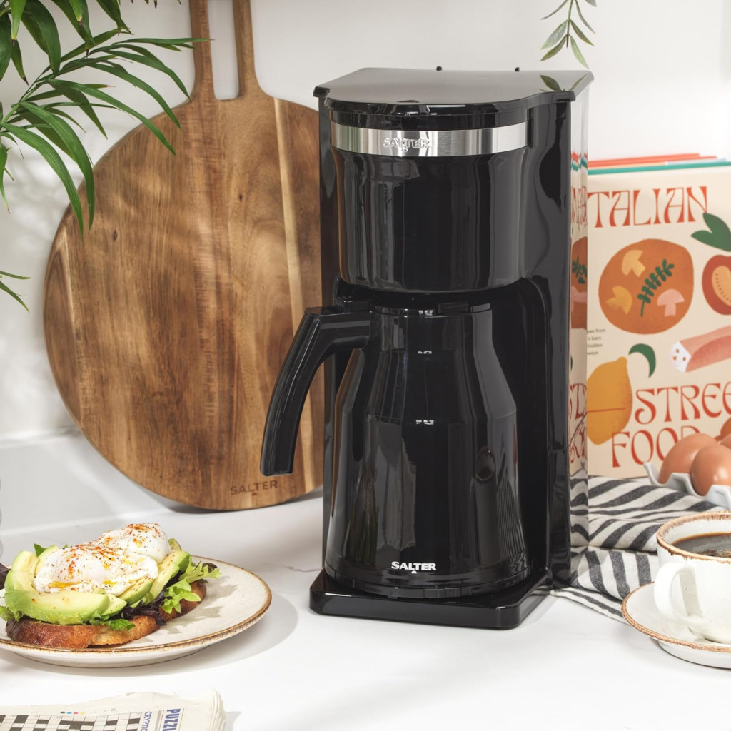 A Salter Thermobrew egy modern, megbízható szűrőkávéfőző, amely tökéletes választás azoknak, akik szeretik a friss, ízletes kávét. Ez a készülék ötvözi az egyszerű kezelhetőséget a professzionális teljesítménnyel, biztosítva, hogy minden nap élvezheted a tökéletes kávét. Az 1 literes termikus üvegtartály és az intelligens hőmegőrzési technológia azt jelenti, hogy a kávé akár 5 órán keresztül meleg és friss marad.