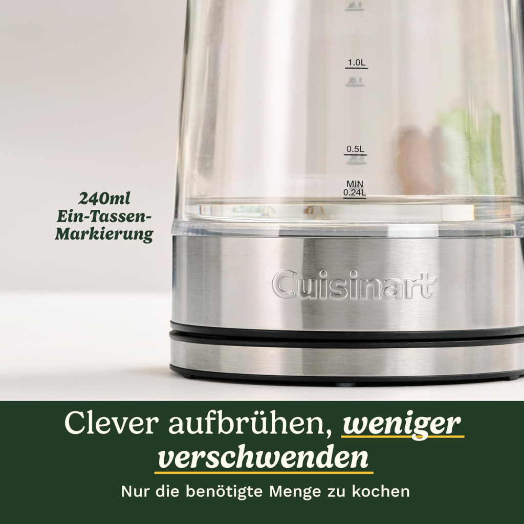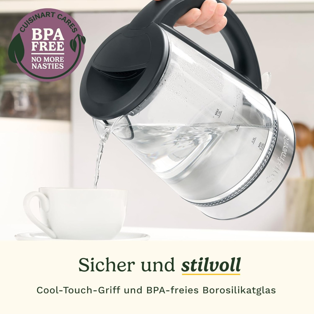 Cuisinart 1.7 L Glass Kettle with Variable Temperature Control, 3 kW Quick Boil Function, Cool Touch, Double-Walled Design, BPA-Free, Drip-Free Spout, 360° Rotating Base