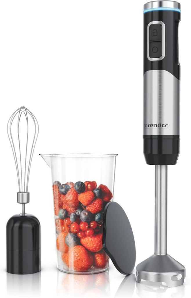 Az Arendo kábelmentes turmixgép karbantartása egyszerű és gyors. A keverőfej és a habverő mosogatógépben mosható, így nem kell kézzel tisztítani. Ha kézzel szeretnéd tisztítani, akkor csak rövid ideig működtesd az eszközt meleg szappanos vízben, majd alaposan öblítsd le.