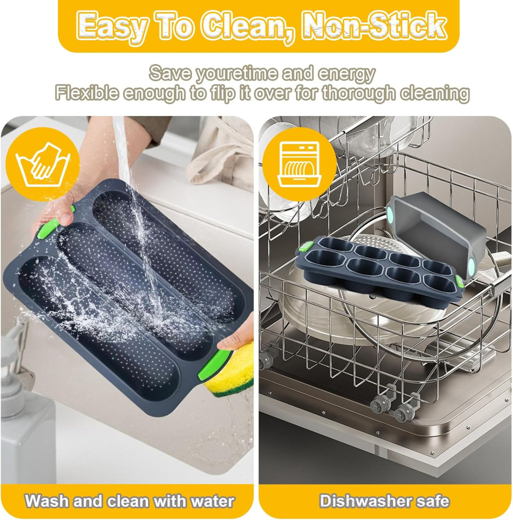 Hoadyush 3 részes bagett sütőforma szilikon kenyérsütéshez mosogatógépben biztonságos