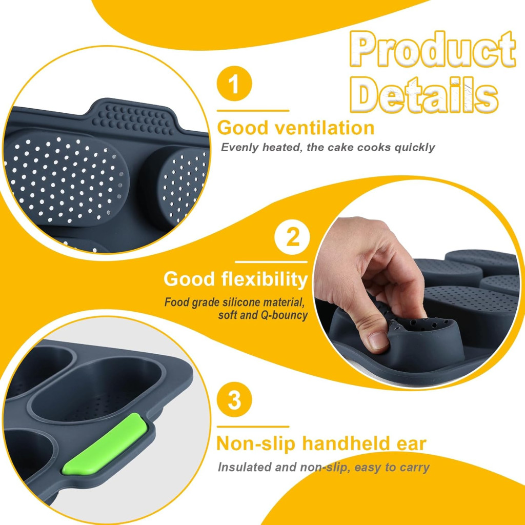 A Hoadyush 3 darabos baguette sütőforma egy professzionális minőségű kenyérsütő eszköz, amely tökéletesen alkalmas baguettékhez, teljes kiőrlésű kenyérhez és virslihez. A prémium szilikon anyagból készült forma garantálja a hosszú élettartamot és a kiváló sütési eredményeket. Ideális választás azoknak, akik otthonukban szeretnének finom, ropogós kenyeret készíteni.