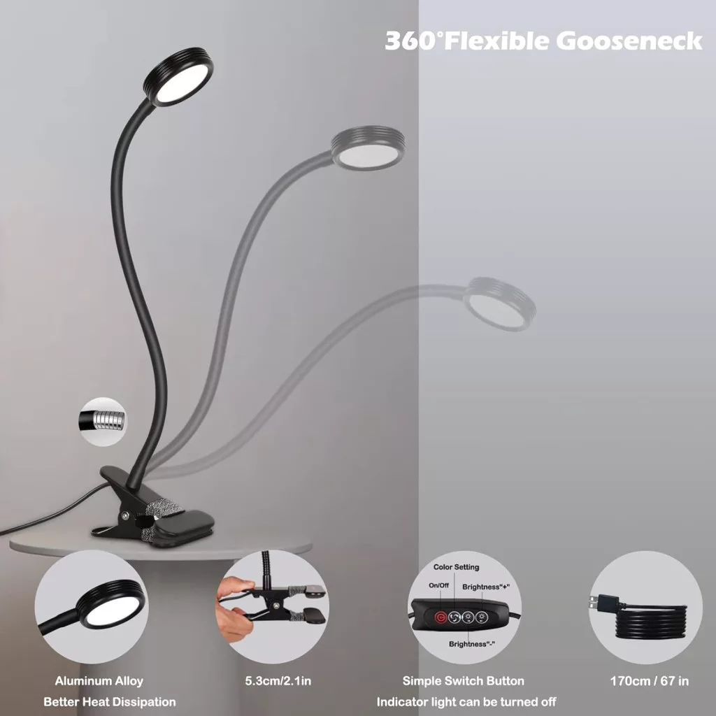 A 3 szín hőmérséklet és 9 fényerő szint kombinációja lehetővé teszi, hogy teljesen személyre szabott megvilágítást hozzon létre. Reggeli munkához válassza a hideg fehér fényt, este pedig a meleg fényt, amely nem zavarja az alvást. Az erős fém klip és rugalmas gooseneck garantálja, hogy a lámpa pontosan oda kerül, ahova szüksége van.