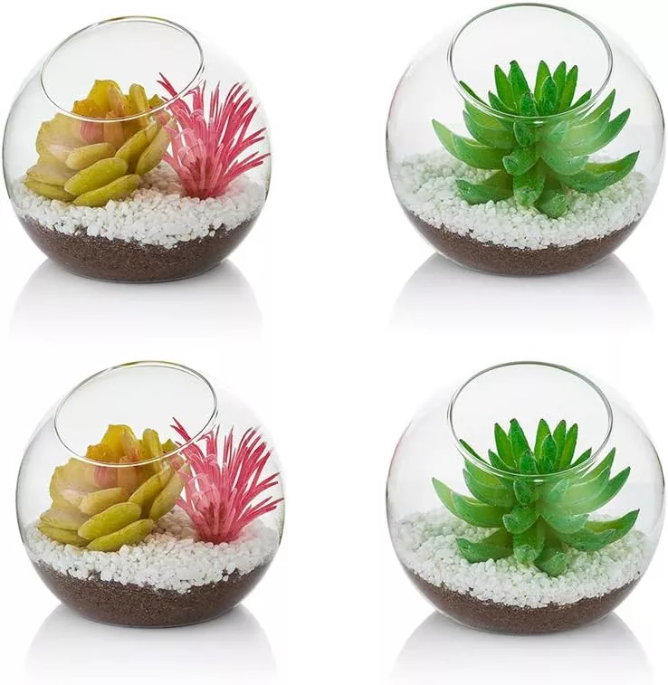 Glasseam 10cm Mini Üveg Terrarium Szett 4db Asztali Dekoráció Szukkulens Kaktusz