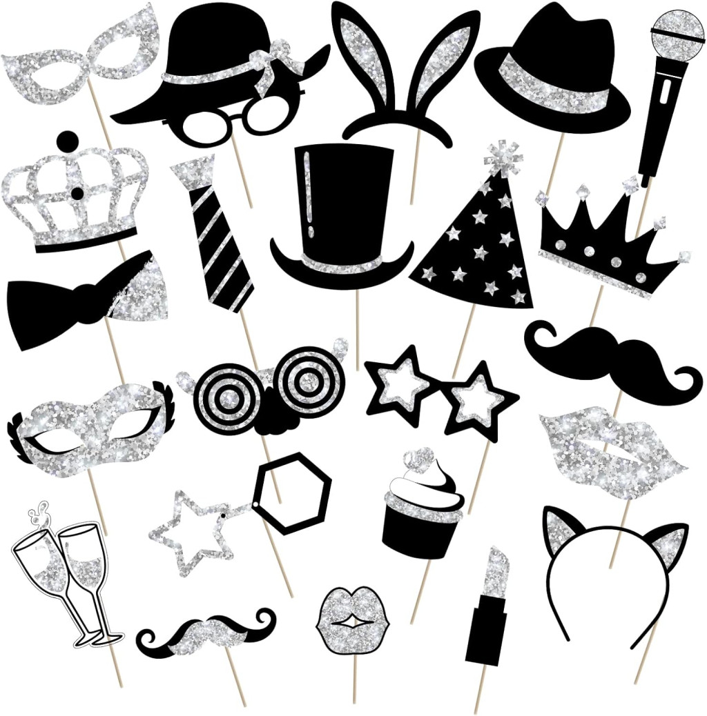 Zonon 24 darabos Party Photo Booth kellékek szett - sapka, pohár, nyakkendő, korona ezüst
