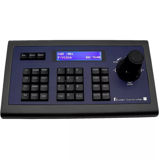 A Tenveo PTZ Controller joystickkal ellátott készüléke támogatja a VISCA, PELCO D/P protokollokat, és ideális nagyobb konferenciatermek, tantermek, élő show-k és templomi közvetítések számára. A kontroller akár 255 PTZ kamerát és 255 előre beállított helyzetet támogat, és kompatibilis a VISCA, PELCO-D/P vezérlési protokollokkal, valamint az RS232, RS422, RS485 szabványokkal.