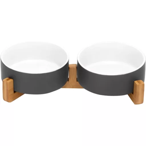 SPUNKYJUNKY Kerámia Tálka Bambusz Állvánnyal, Emelt Etető Tál Kutyáknak Macskáknak 400ml