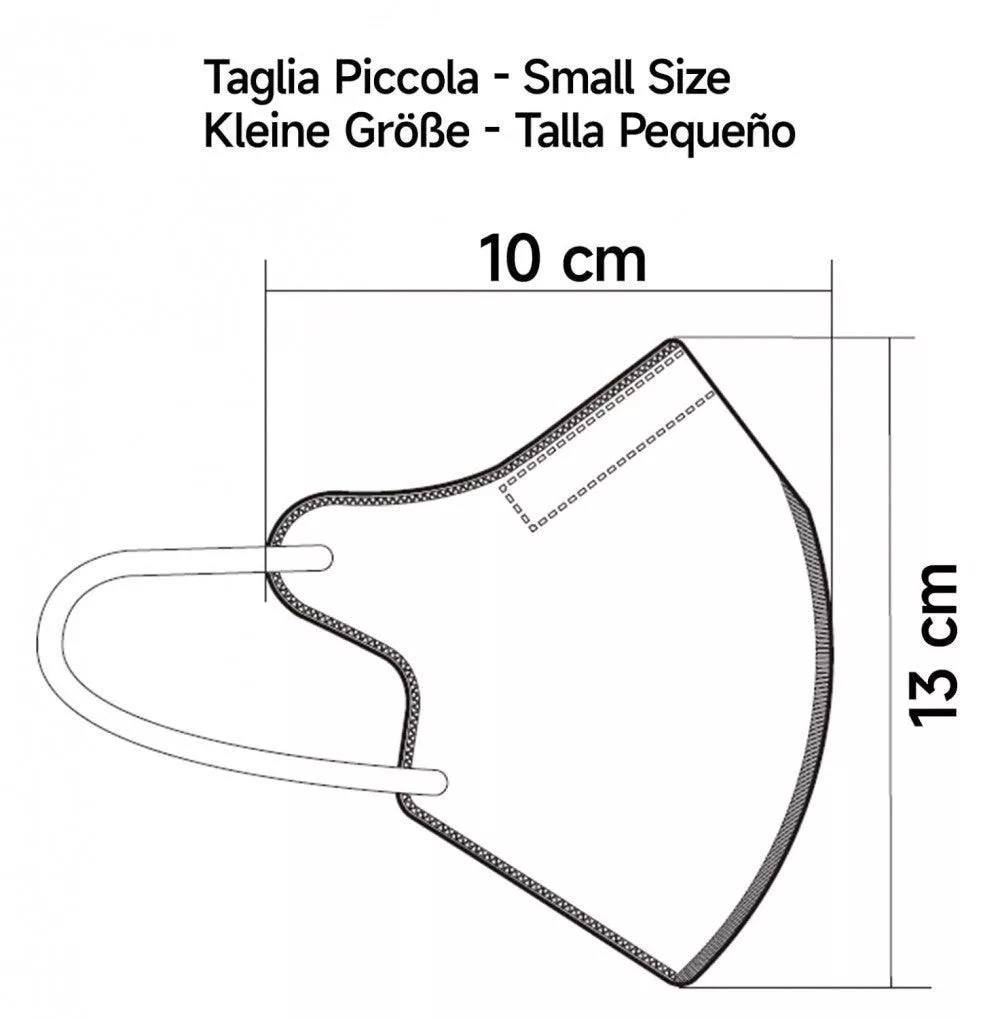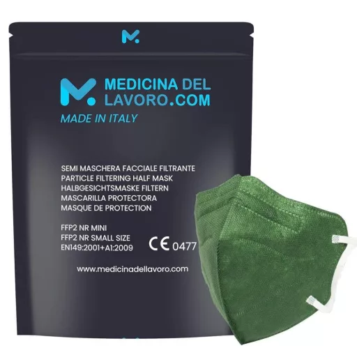 Az 20 Mascherine FFP2 Colorate Verde Taglia Piccola Small Size egy minőségi, olasz készítésű arcmaszk, amely a CE 0477 tanúsítvánnyal rendelkezik. Ez a maszk 4 rétegből áll, és PFE≥94% hatékonysággal szűri a levegőt. Minden maszk egyenként csomagolva érkezik, és tartalmaz 4 fülvédő kiegészítőt. A maszk zöld színű és kis méretű, ideális azoknak, akiknek kisebb arcuk van. A termék Made in Italy.