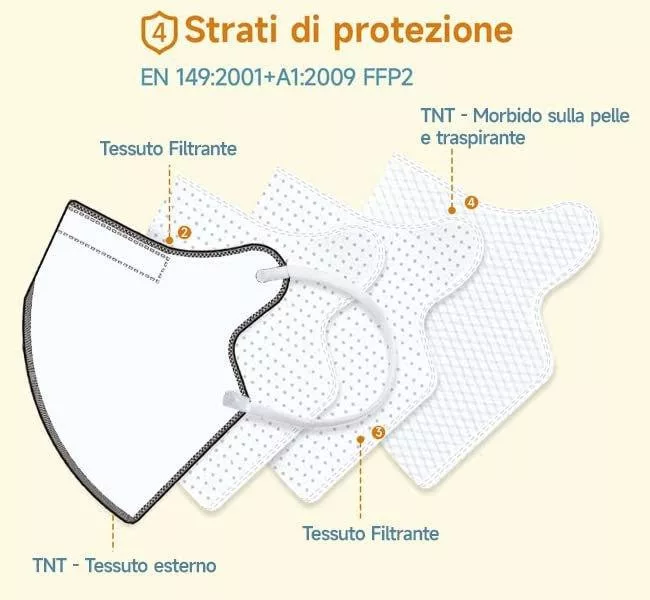 Ez az arcmaszk minden szükséges európai biztonsági előírásnak megfelel, és teljesíti az UNI EN 149: 2001 + A1: 2009 szabványokat is. A maszk kiváló minőségű anyagokból készül, és Made in Italy minősítéssel rendelkezik, ami garancia a megbízhatóságra és a tartósságra.