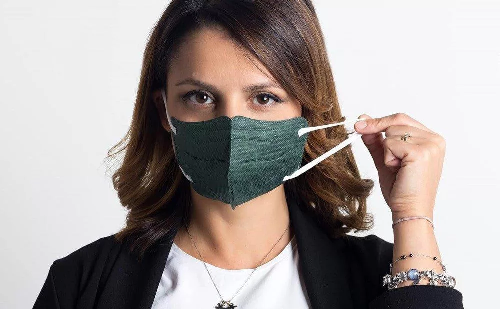 maszk, FFP2, arcmaszk, szűrő, kis méret, zöld, olasz, CE tanúsítvány, Made in Italy, 4 réteg, PFE≥94%