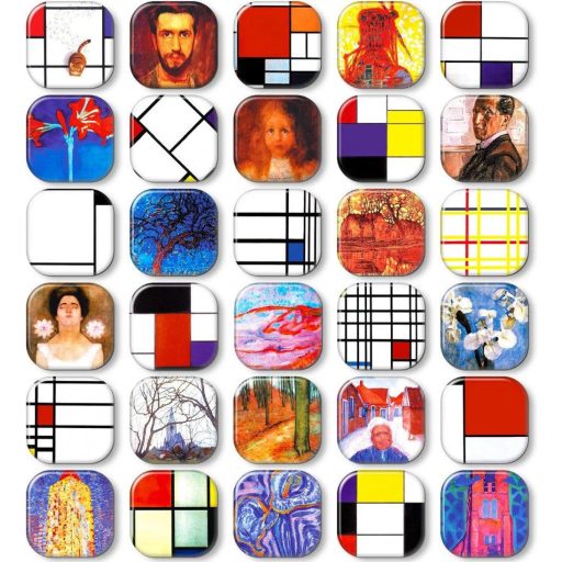 MORCART, mágneskészlet, hűtőmágnes, színes, négyzet alakú, híres festmények, dekoratív mágnesek, fehér tábla, iskolai szekrények, osztálytermek, Mondrian