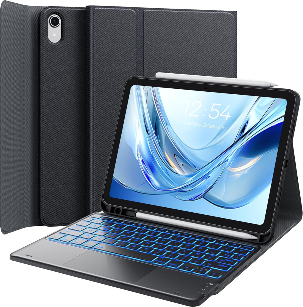 Earto 10. generációs iPad Billentyűzet - Bluetooth, Háttérvilágítás, Trackpad