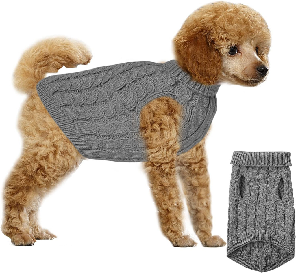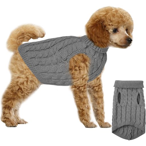 Grantop Téli Kötött Kutyapulóver - Garbónyakú Meleg Kisállat Ruha Kistestű és Közepes Kutyáknak, Macskáknak - Szürke L Méret