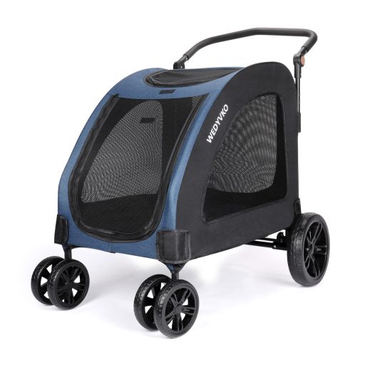 Virzen Nagy Kutyakocsi Virzen Nagy Kutyakocsi 50kg-ig - Kétszemélyes Kutyabuggy 4 Kerékkel, Állítható Fogantyúval (Fekete-Kék)