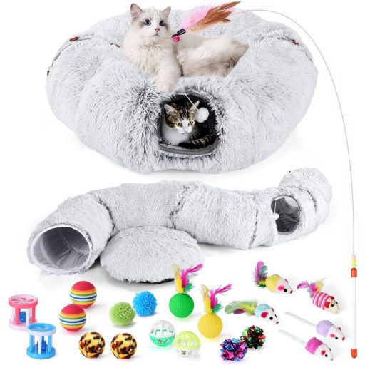 Odoland Macska Alagút Játék Plüss Ággyal, Összecsukható Macska Barlang Labdával