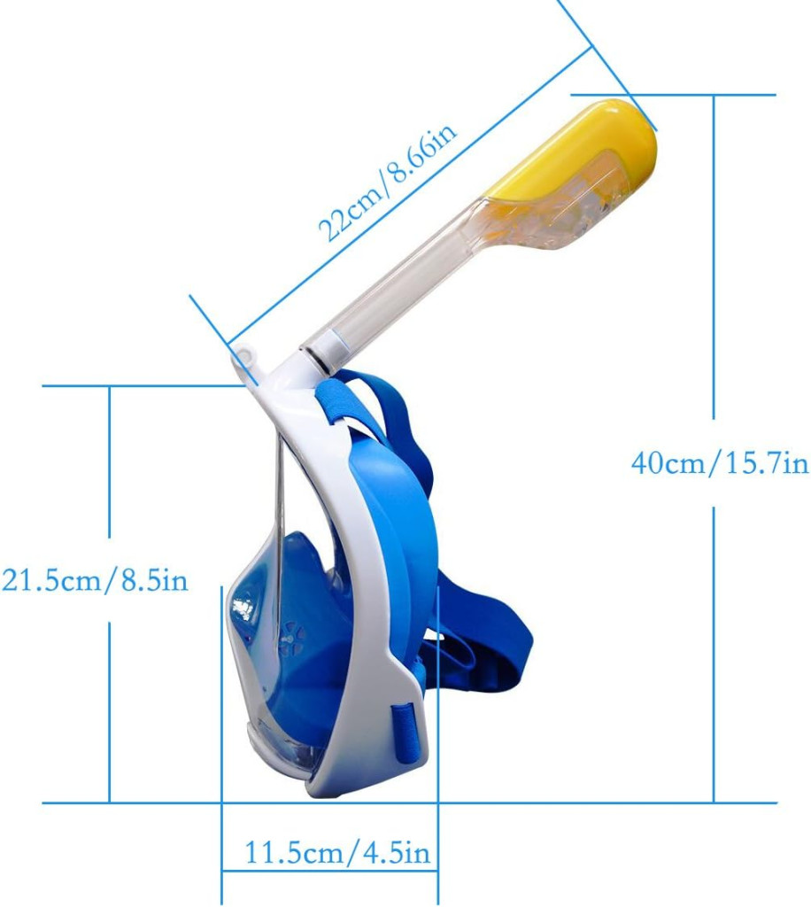 Flyboo Búvármaszk - 180° Panoráma Teljes Arc Légzőcső, Páramentes Búvárkodáshoz, Úszáshoz, Kék, Sportkamera Kompatibilis, Felnőtteknek és Gy
