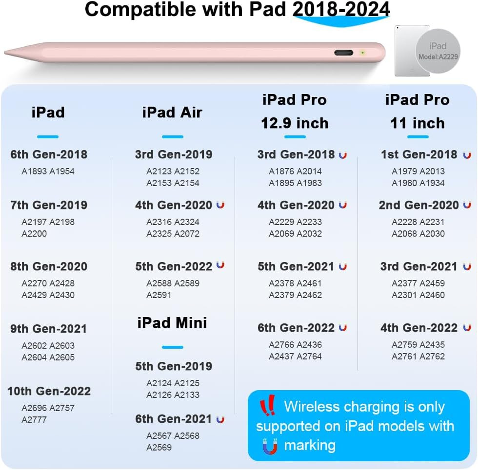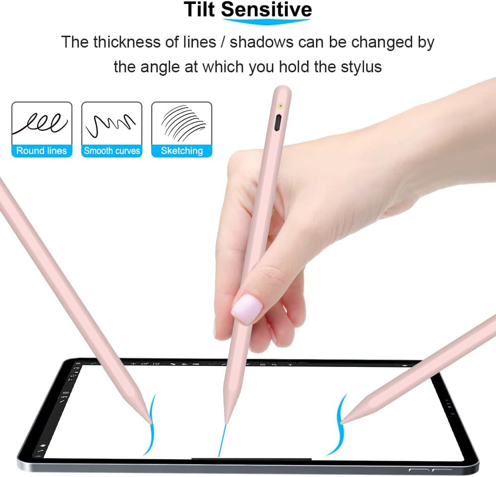 Vezeték nélküli töltésű, USB-C csatlakozós stylus dőlésdetektálással és tenyérelutasítással az iPad Pro, Air, Mini és iPad modellek számára.