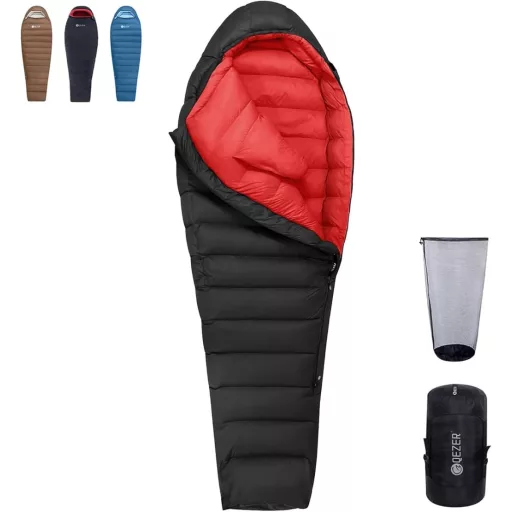 QEZER 650-es lúddaun téli hálózsák -30°C-ig, kempingezéshez és hegymászáshoz
