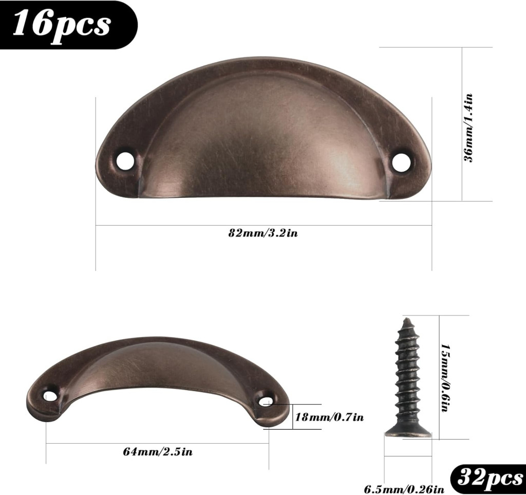 Yibaijia Vintage Bronze Cupboard Handles - 16 Pieces Retro Red | Szekrénygombok