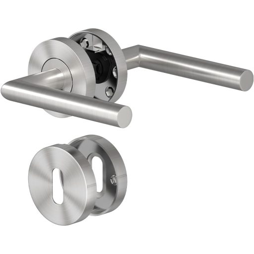 AwmnSrman L-alakú rozsdamentes acél ajtókilincs szett - Ezüst, selyemfényű, BB zárbetéttel, beltéri ajtókhoz, 50.000 nyitásra tesztelve