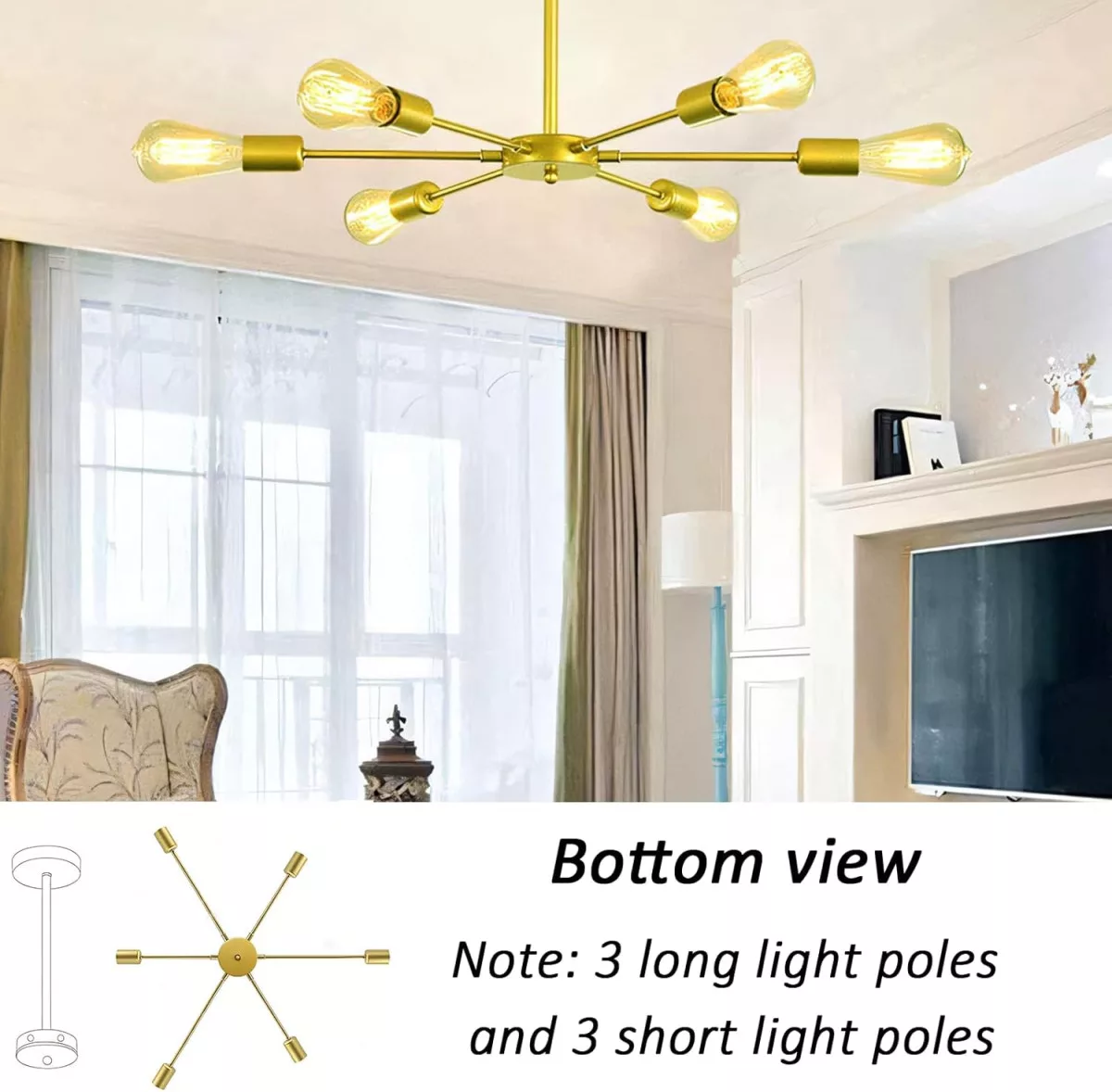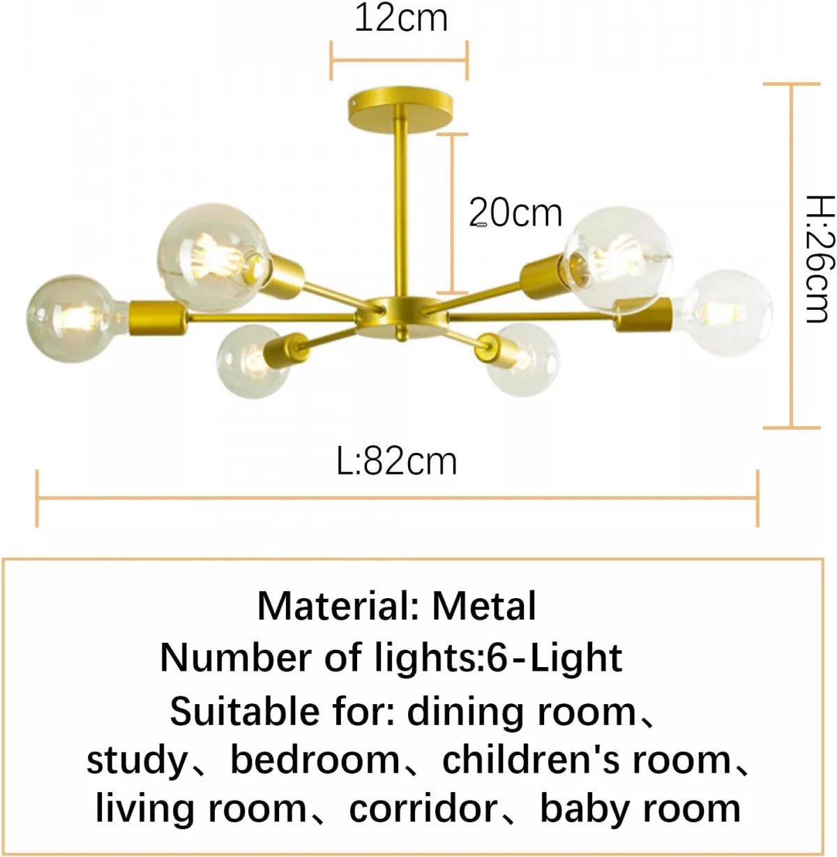 • 6 ágú kialakítás: Szimmetrikus ágak biztosítanak egyenletes fényeloszlást az egész szobában