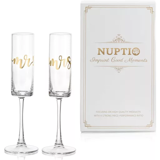 NUPTIO Arany Pezsgőspoharak Esküvői Ajándék - Mr és Mrs Gravírozott Poharak Termék Áttekintés
