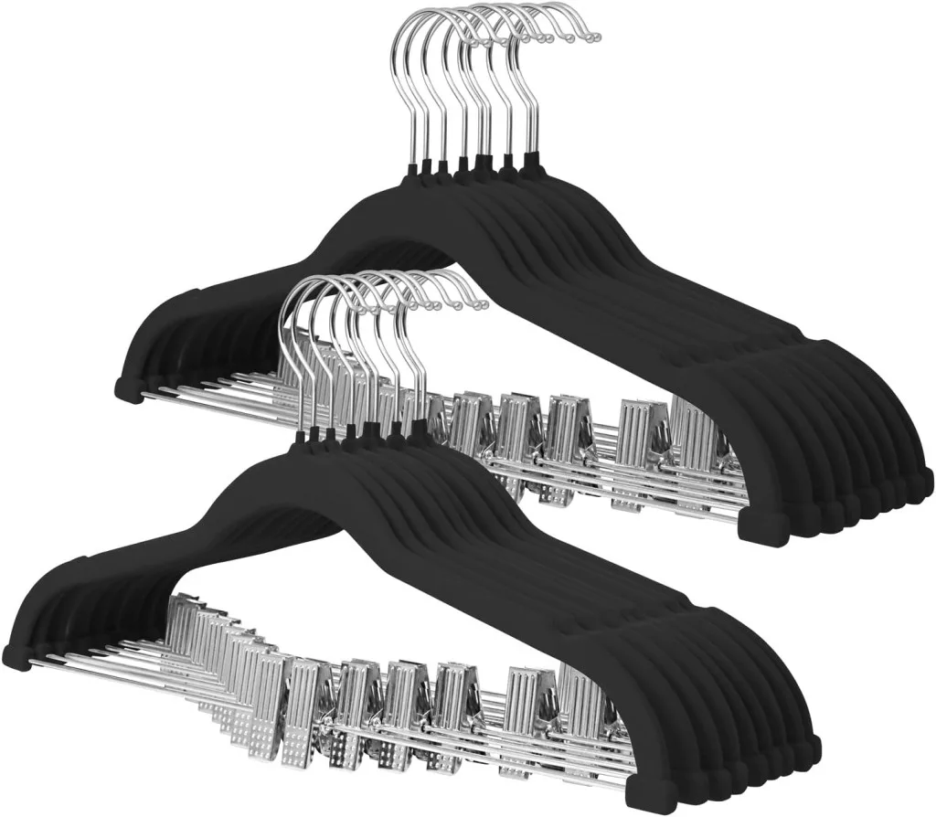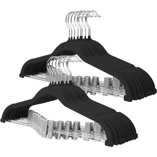ManGotree Csúszásmentes Bársony Ruhaakasztó Szett 18db Fekete - Nadrág, Szoknya, Ing Tartó Klipekkel