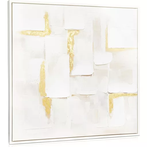 Varázsoljon otthonába elegáns és modern hangulatot ezzel a lenyűgöző 60 x 60 cm-es Briful absztrakt vászonképpel! A félig kézzel festett, félig nyomtatott alkotás tökéletes egyensúlyt teremt a művészi kifejezés és a modern technológia között. Az arany geometriai elemek és a harmonikus színvilág azonnal a szoba központi elemévé teszik ezt a különleges darabot.