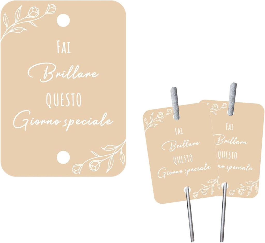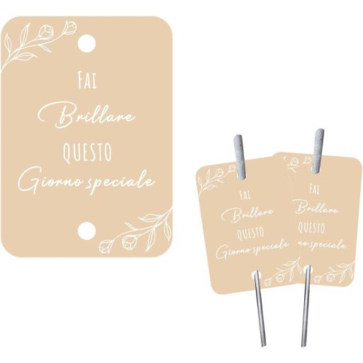 Ez a különleges dekorációs termék az esküvőd, évfordulód, születésnapod vagy más fontos ünnepséged legfontosabb kiegészítője lehet. A barna-rózsaszín színű, négyzet alakú címkék glitteres csillagokkal és szalagokkal díszítve teszik még szebbé az ünnepségedet. Minden vendég, aki megkapja ezeket a fénylő címkéket, garantáltan elcsodálkozik a szépségükön és az elegáns megjelenésükön.