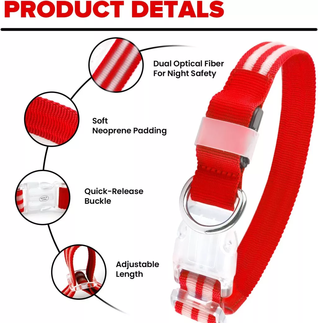 A tartós 1000D nylon anyag és a puha neoprén bélés biztosítja, hogy a nyakörv kényelmes és hosszú ideig tartó. A 3 világítási mód lehetővé teszi, hogy kiválassza a legmegfelelőbbet az adott helyzethez.
