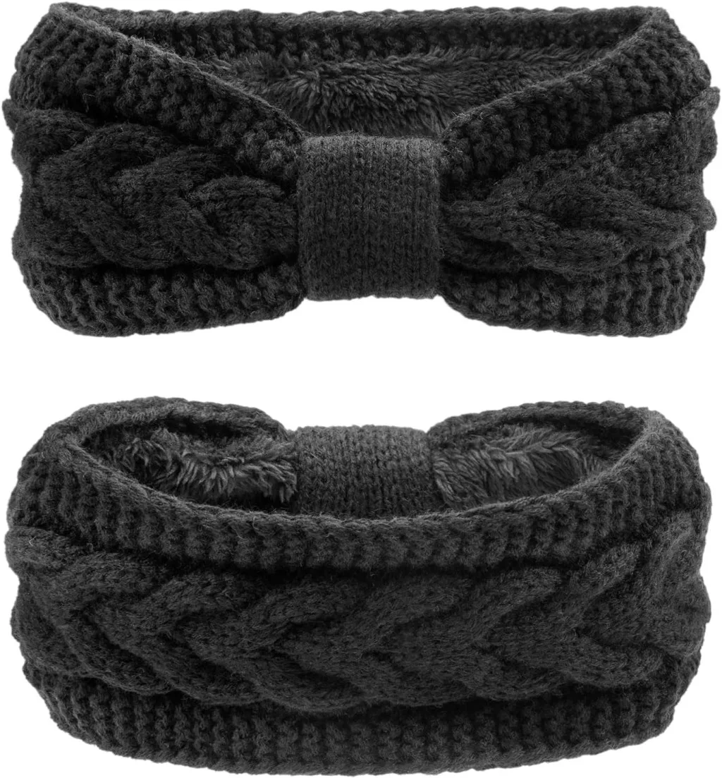 DRESHOW női meleg kötött fejpánt téli fülmelegítő vastag fleece béléssel