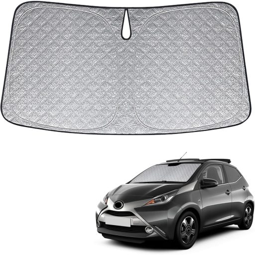 A Toyota Aygo X 2022-2025 modellekhez tervezett napvédő szélvédő egy professzionális megoldás az autó belsejének védelméhez. Ez a speciálisan kialakított napvédő 6 rétegű hővisszaverő technológiával rendelkezik, amely 100%-ban blokkolja az UV-sugárzást és a hőfelhalmozódást. Az ezüst oldal kifelé néz és visszaveri az ultraibolya sugarakat, míg a fekete oldal befelé fordítva szigeteli a hőt, így az autó belseje jelentősen hűvösebb marad.