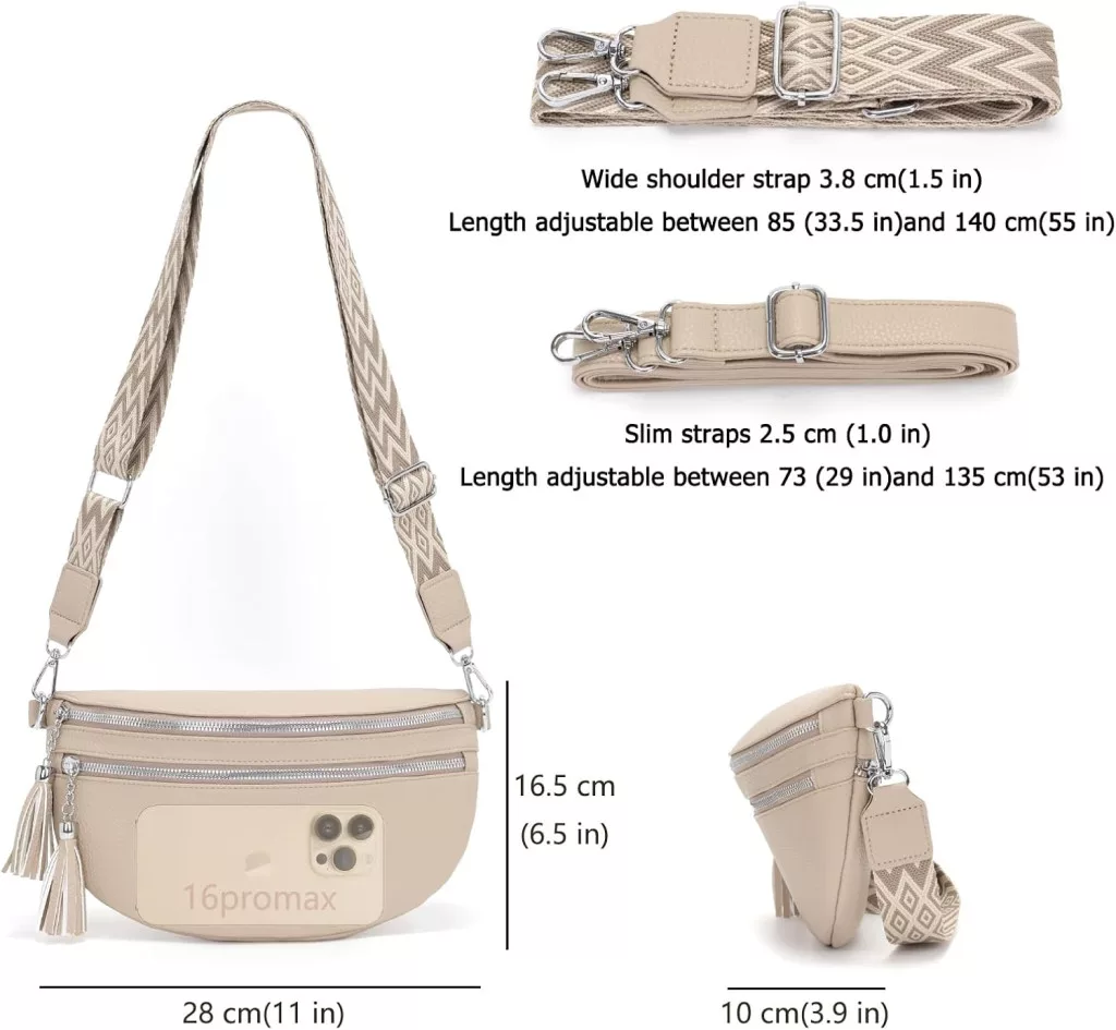 A 28 x 16,5 x 10 cm-es méret ideális a napi szükségletek tárolására, míg a többszörös zsebek és hitelkártyatartó helyek biztosítják, hogy minden a helyén legyen. Az állítható vállpántok (85-140 cm és 73-135 cm) kényelmes viseletet garantálnak.