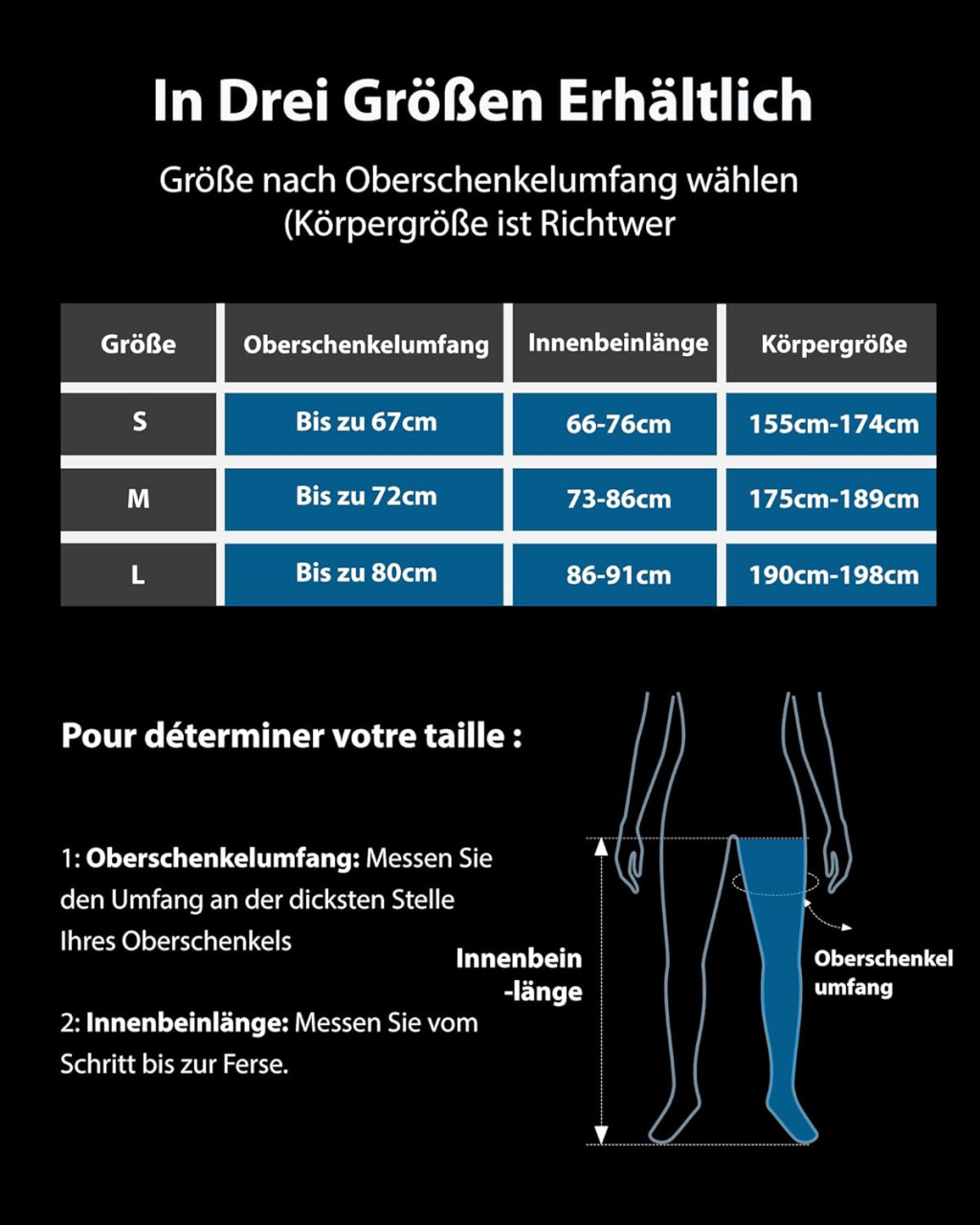 A FIT KING lábmasszírozó kompressziós csizmák M és L méretben érhetők el, hogy biztosítsák a tökéletes illeszkedést különböző testmagasságok számára.