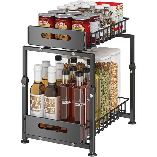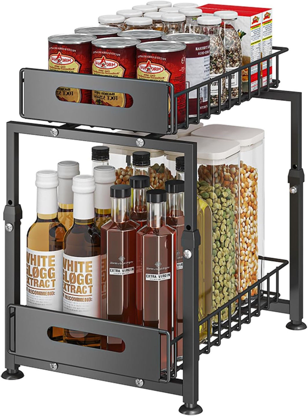 YunNasi Konyhai Szekrény Szervező 2 Szintes Polc Fekete Mosogató Alatti Tároló
