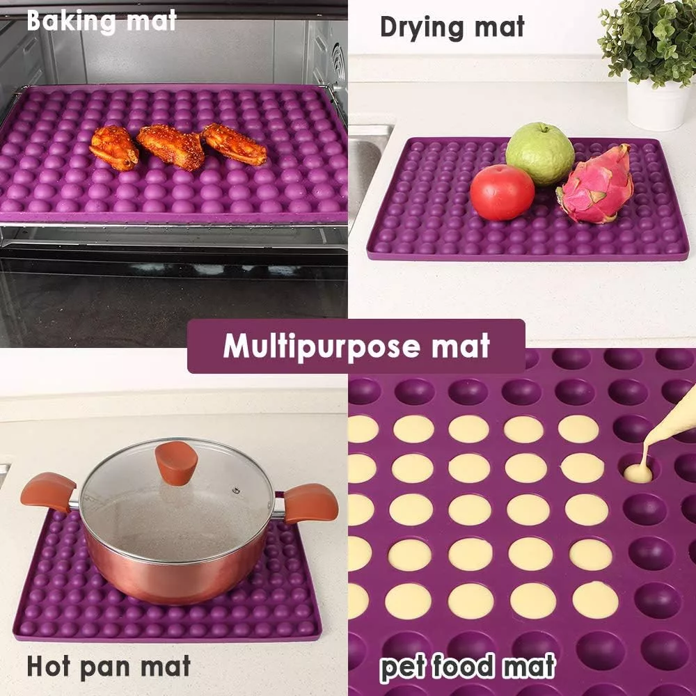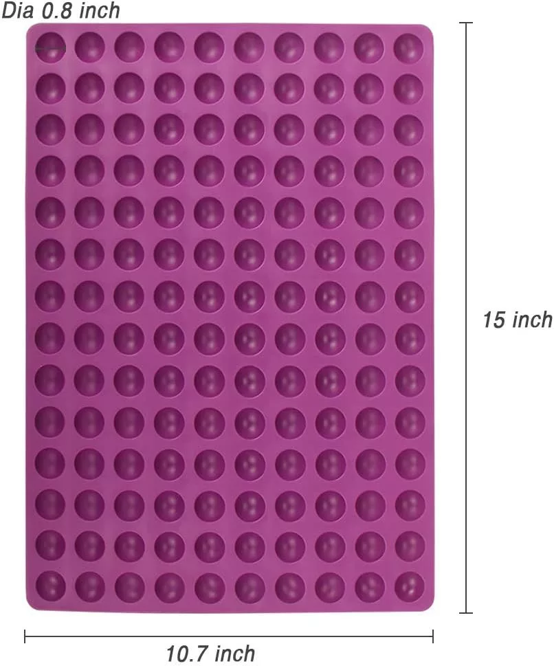 A webake szilikon sütőforma egy sokoldalú, professzionális minőségű konyhai eszköz, amely 140 félgömb alakú üreggel rendelkezik. Tökéletes választás kutyacsemege, kutyakeksz, csokoládé és egyéb apró édességek készítéséhez. A lila szín és a modern dizájn vonzó megjelenést biztosít a konyhában, míg a magas minőségű szilikon anyag garantálja a hosszú élettartamot és a könnyű használatot.